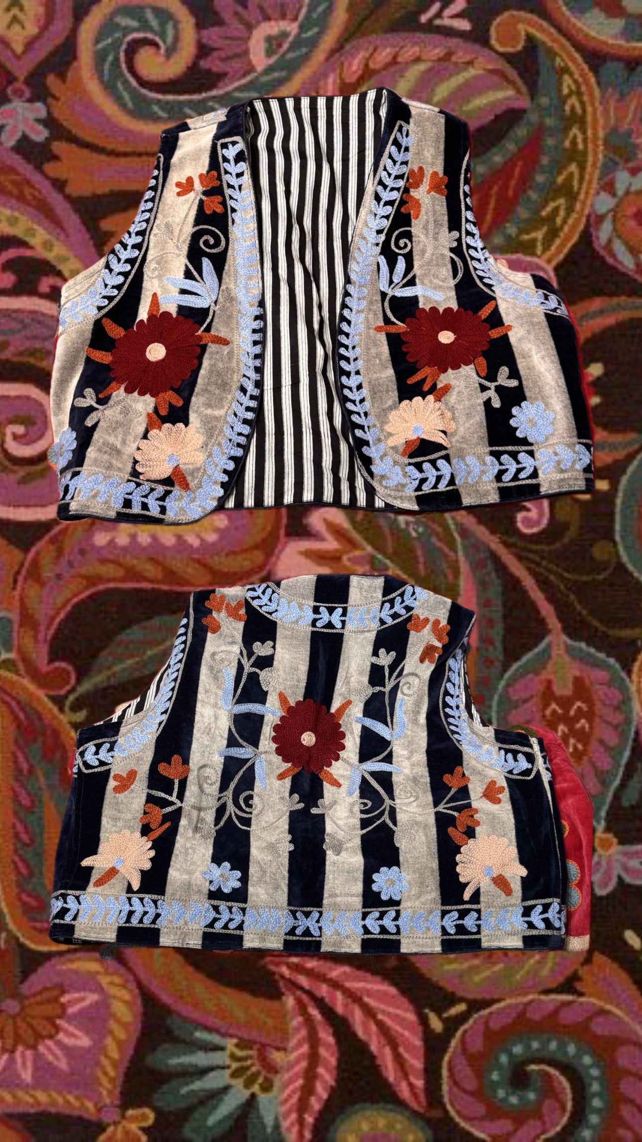 Gilet taglia unica, lavorato a mano in velluto di cotone con interni in cotone.