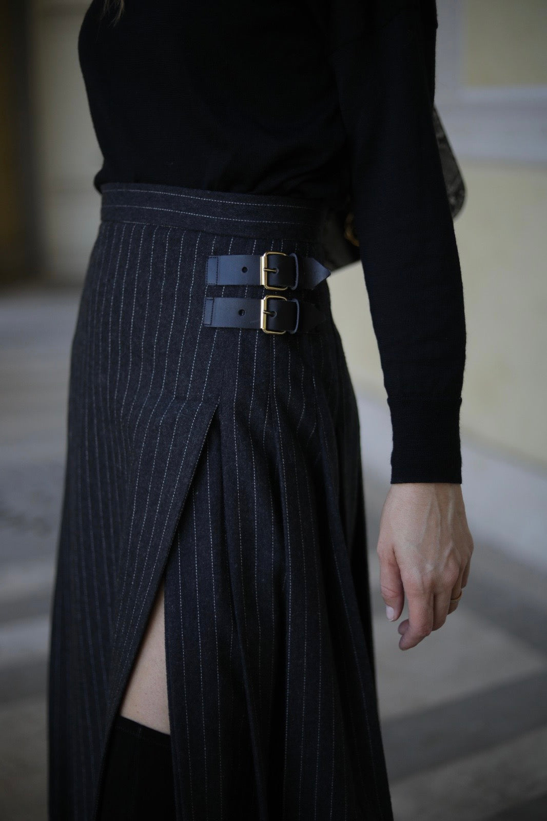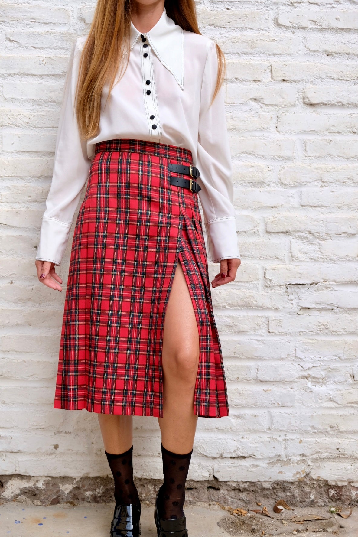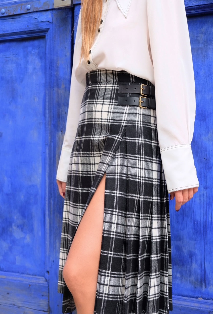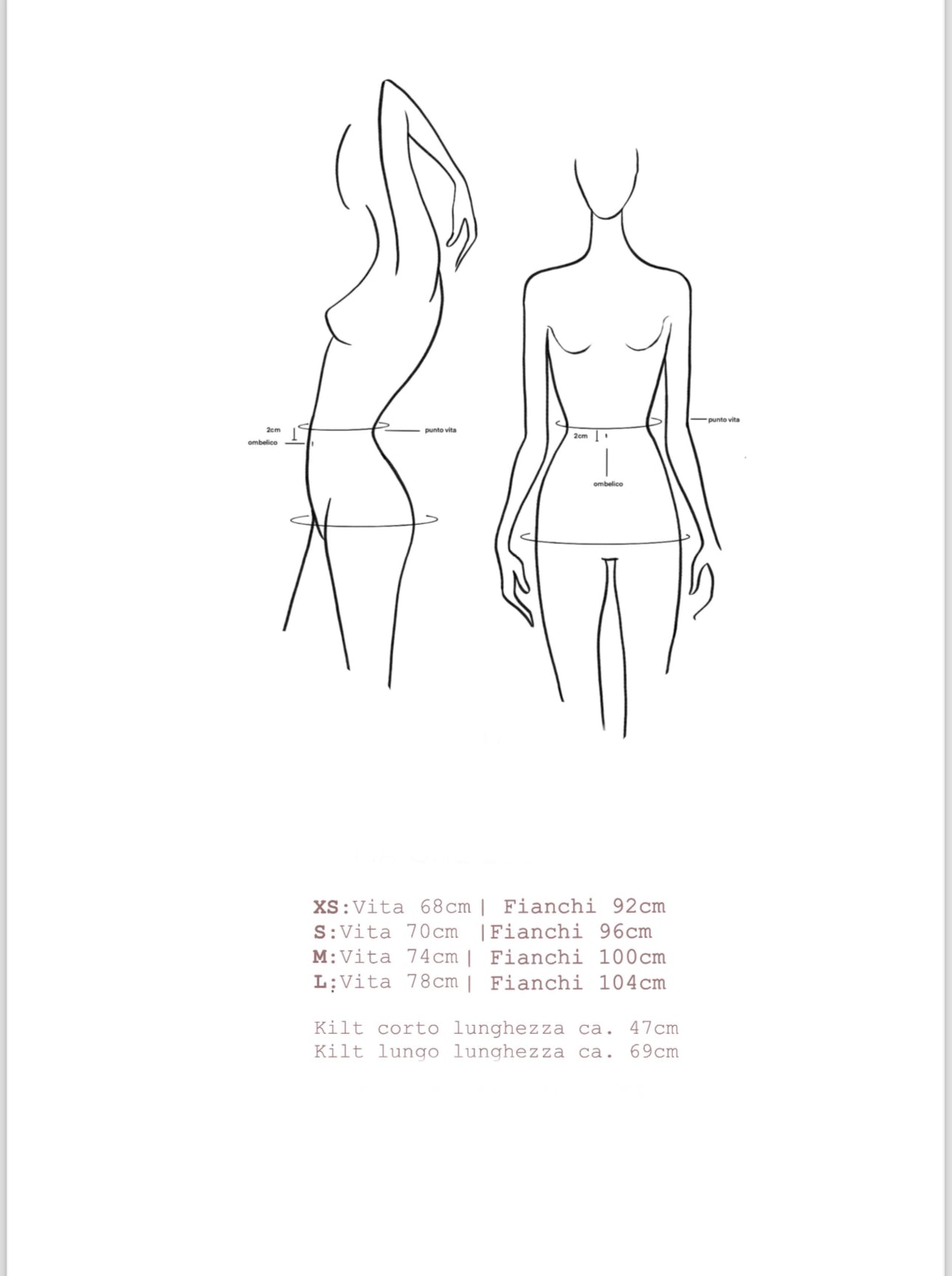 Il nostro kilt lungo con spacco laterale ha la chiusura con zip posteriore.