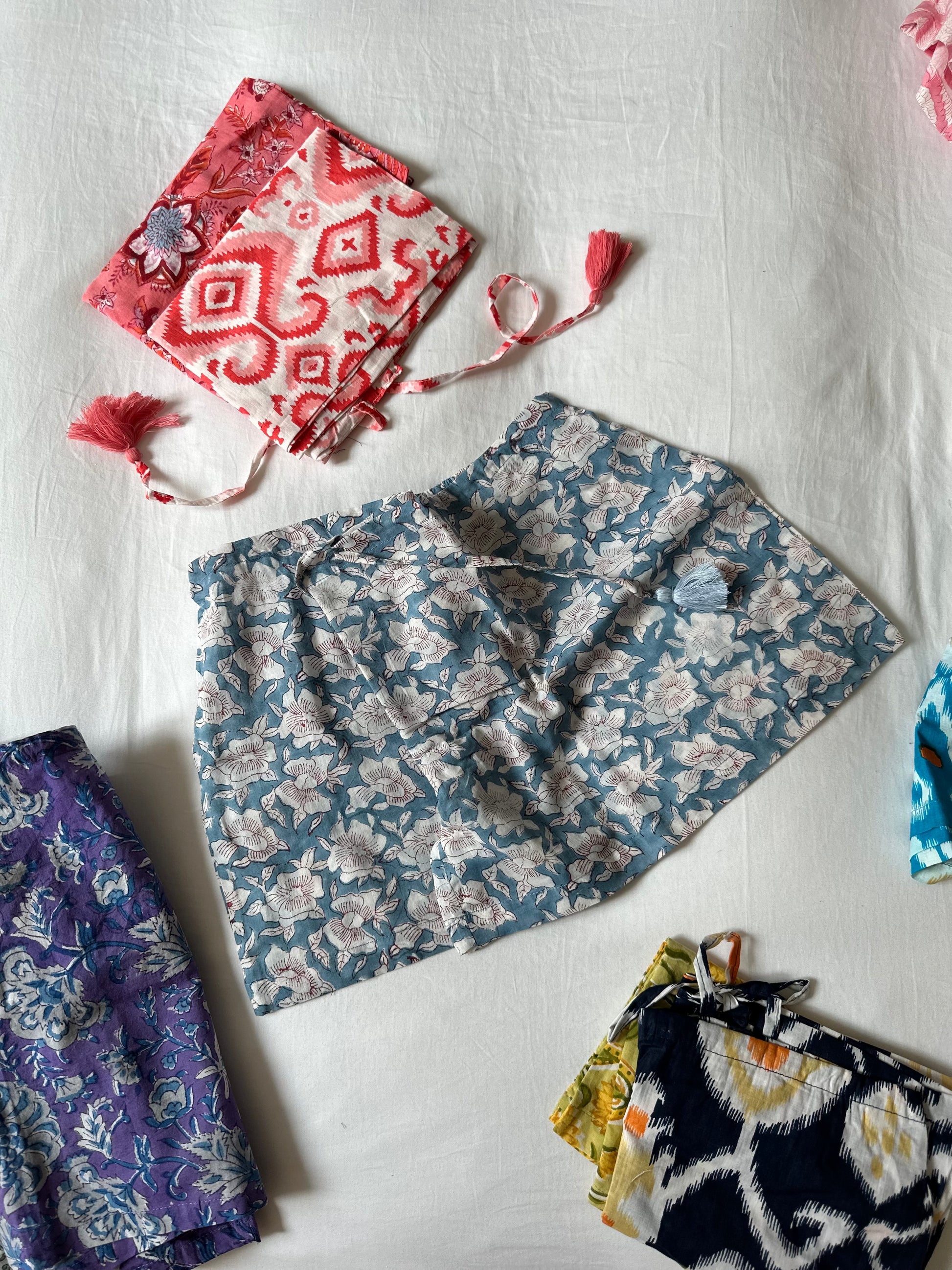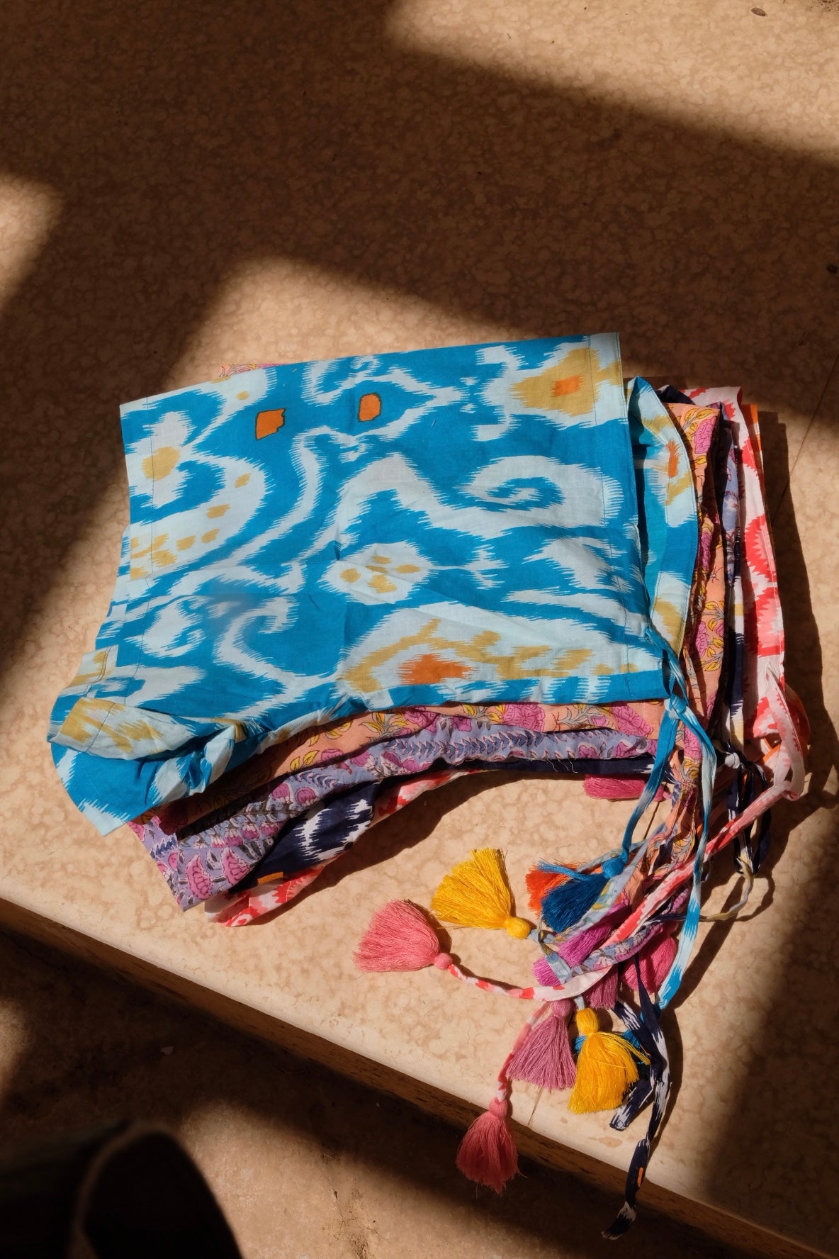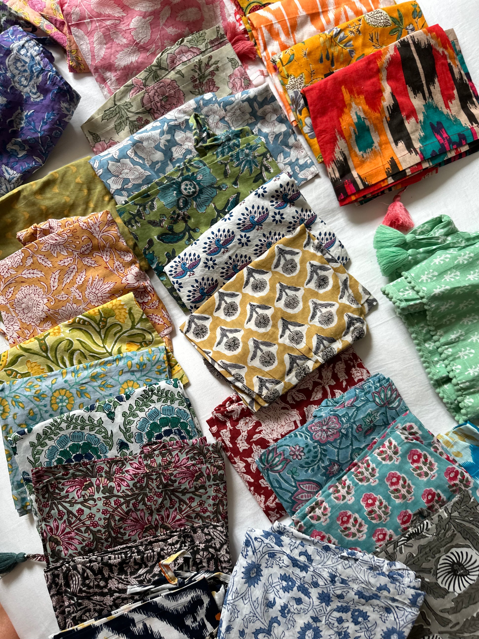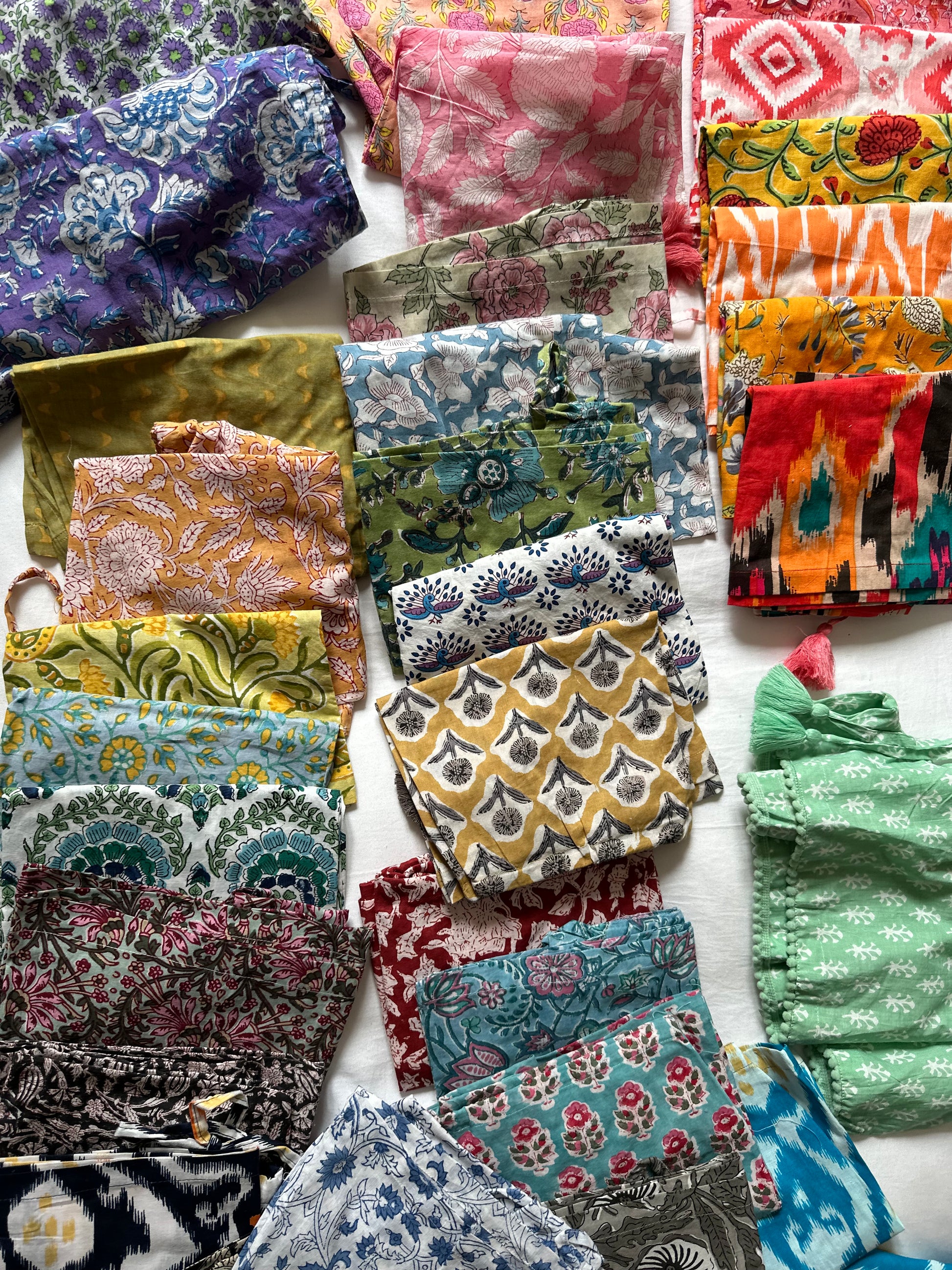 Le stampe sono quasi tutte realizzate secondo la tecnica di stampa Handblock quindi possono presentare delle imperfezioni.