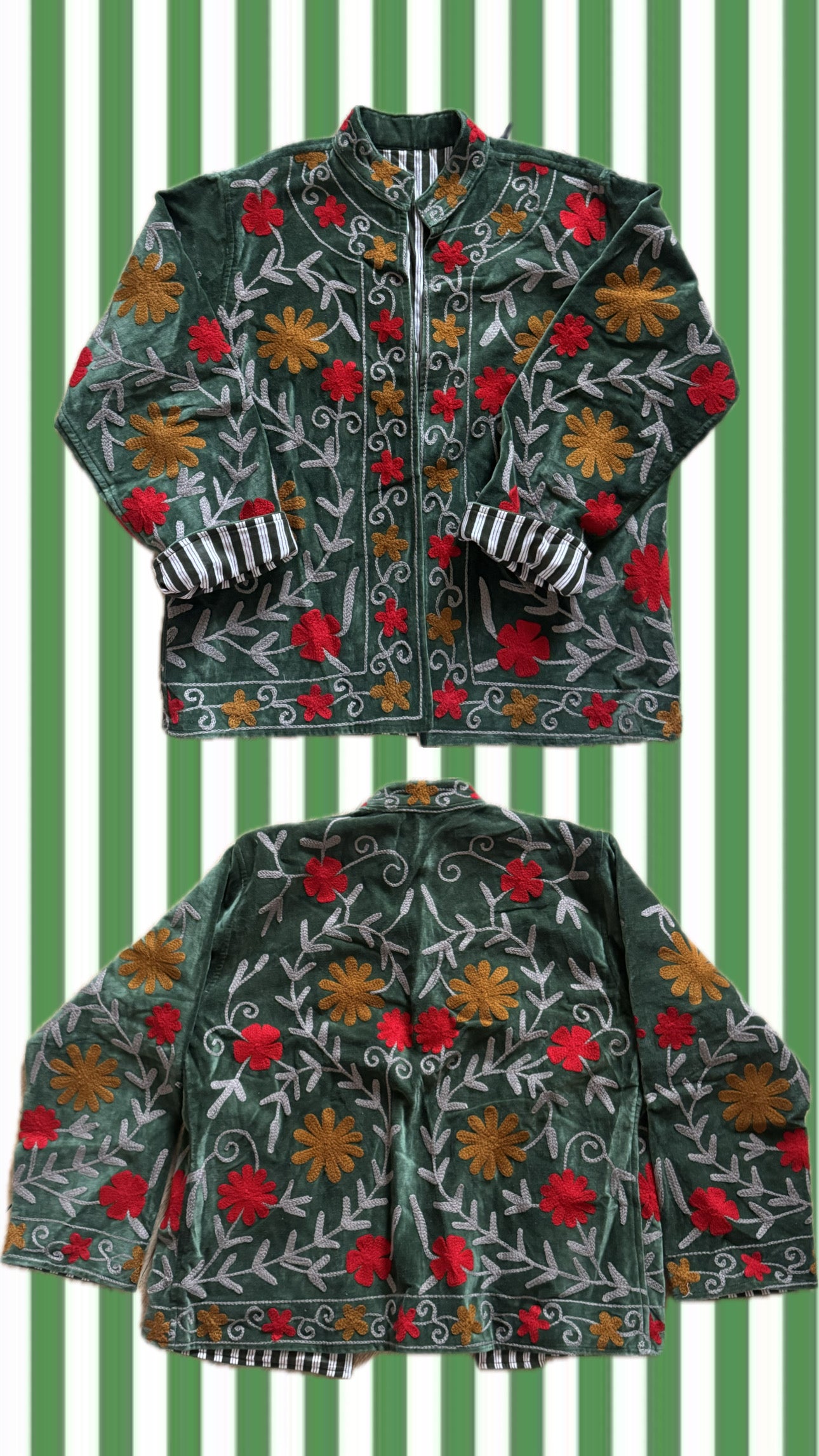 Giacca taglia M e L, lavorate a mano in velluto di cotone con interni in cotone spesso rigato a contrasto