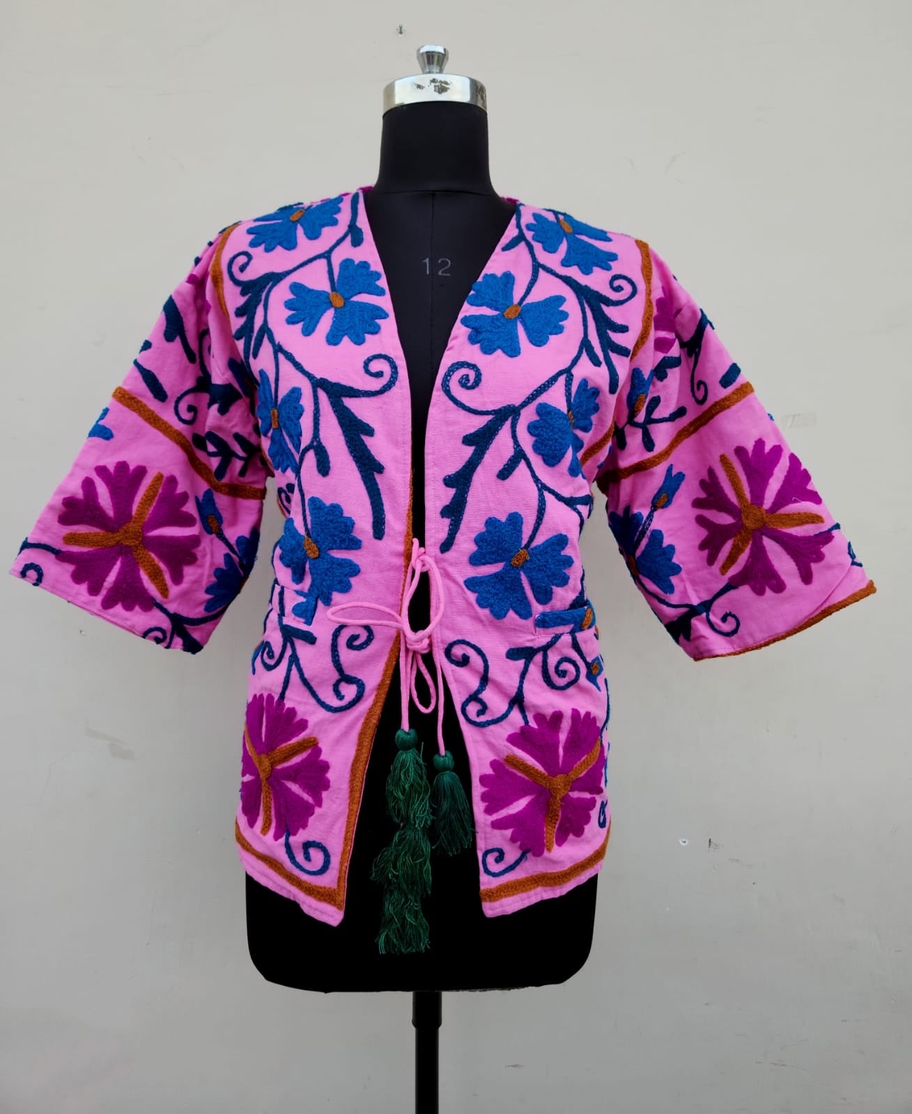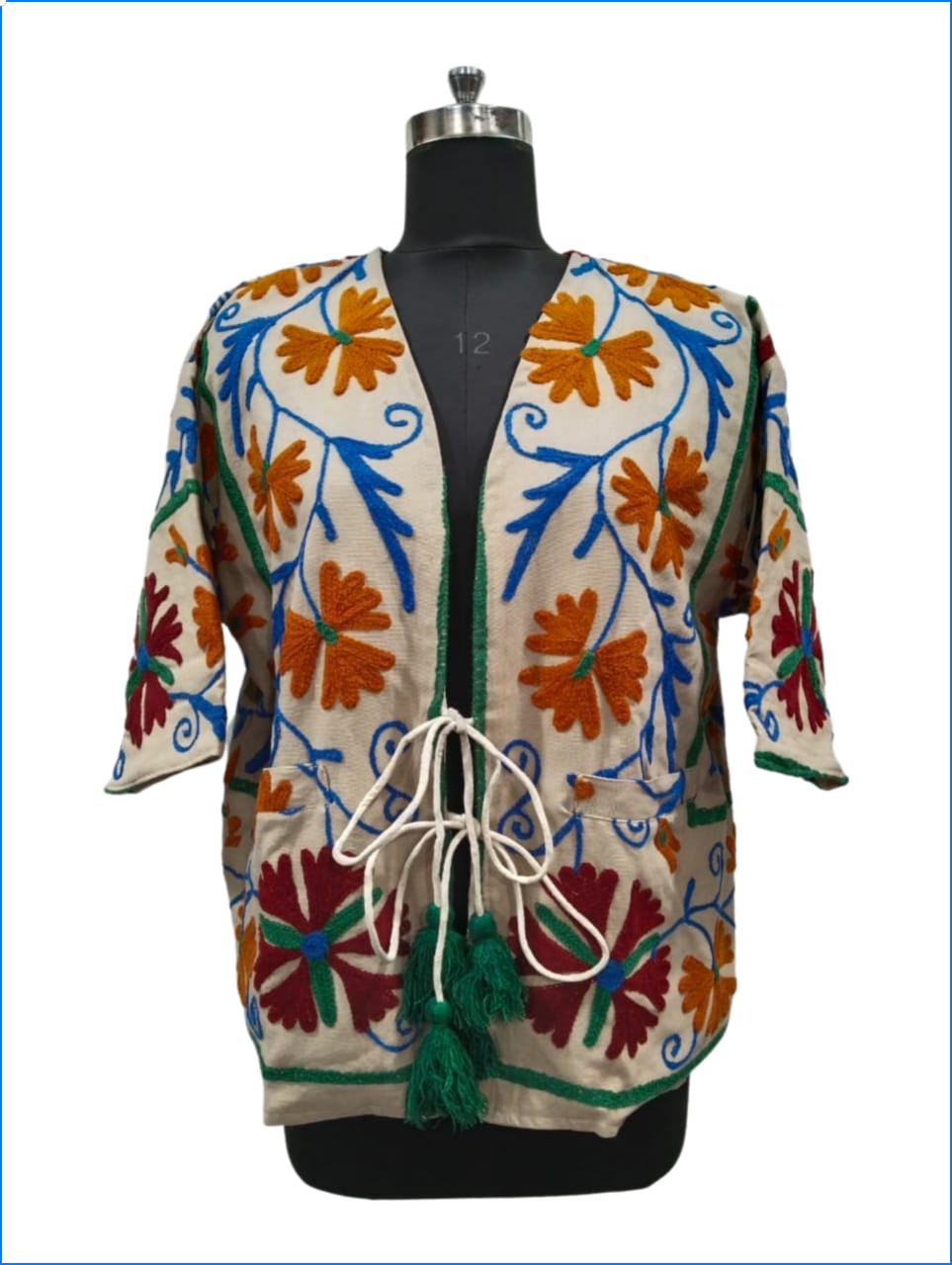 Giacche con maniche a tre quarti in cotone ricamato a mano, possono presentare imperfezioni.